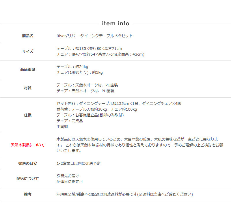 ※本製品には天然木を使用しているため、天板の木目模様や節の位置などは一点ごとに異なります。