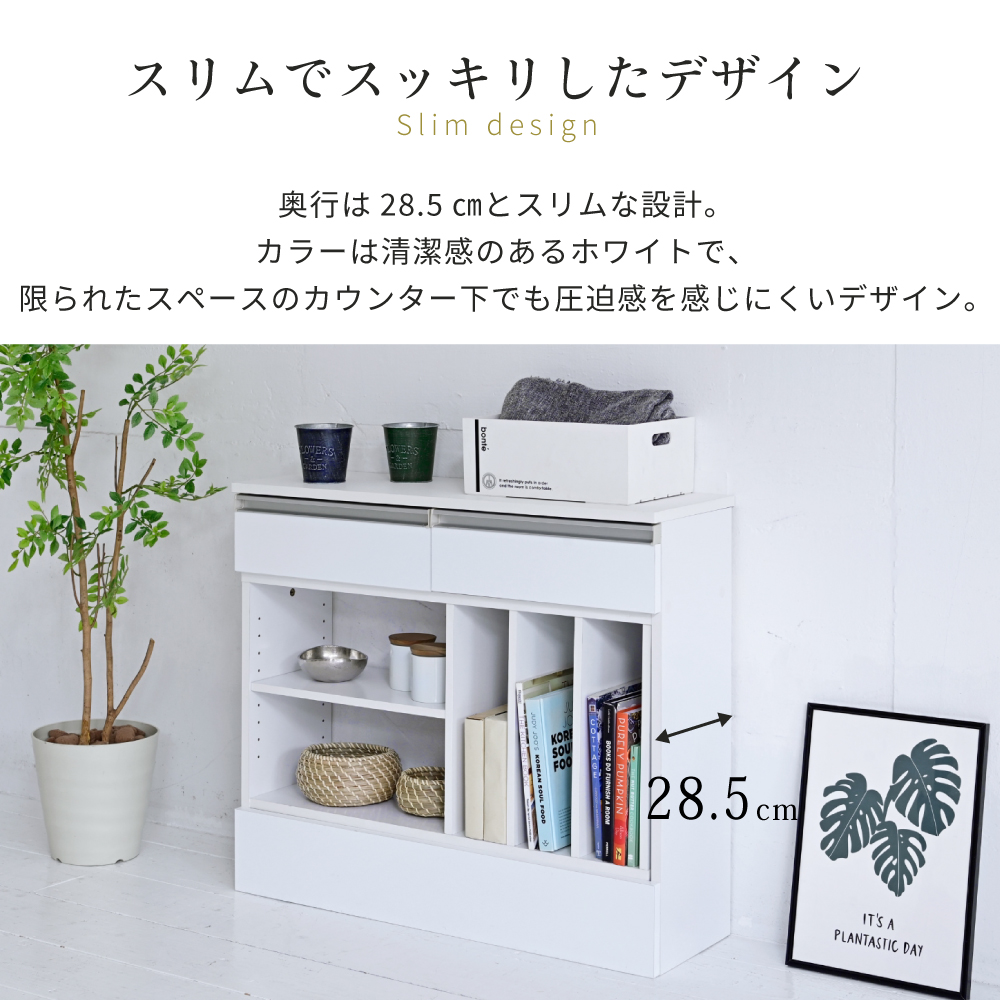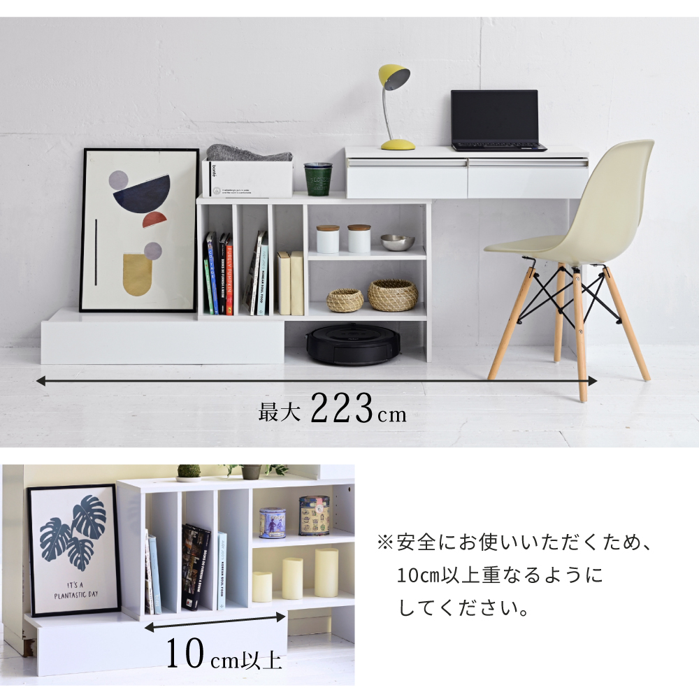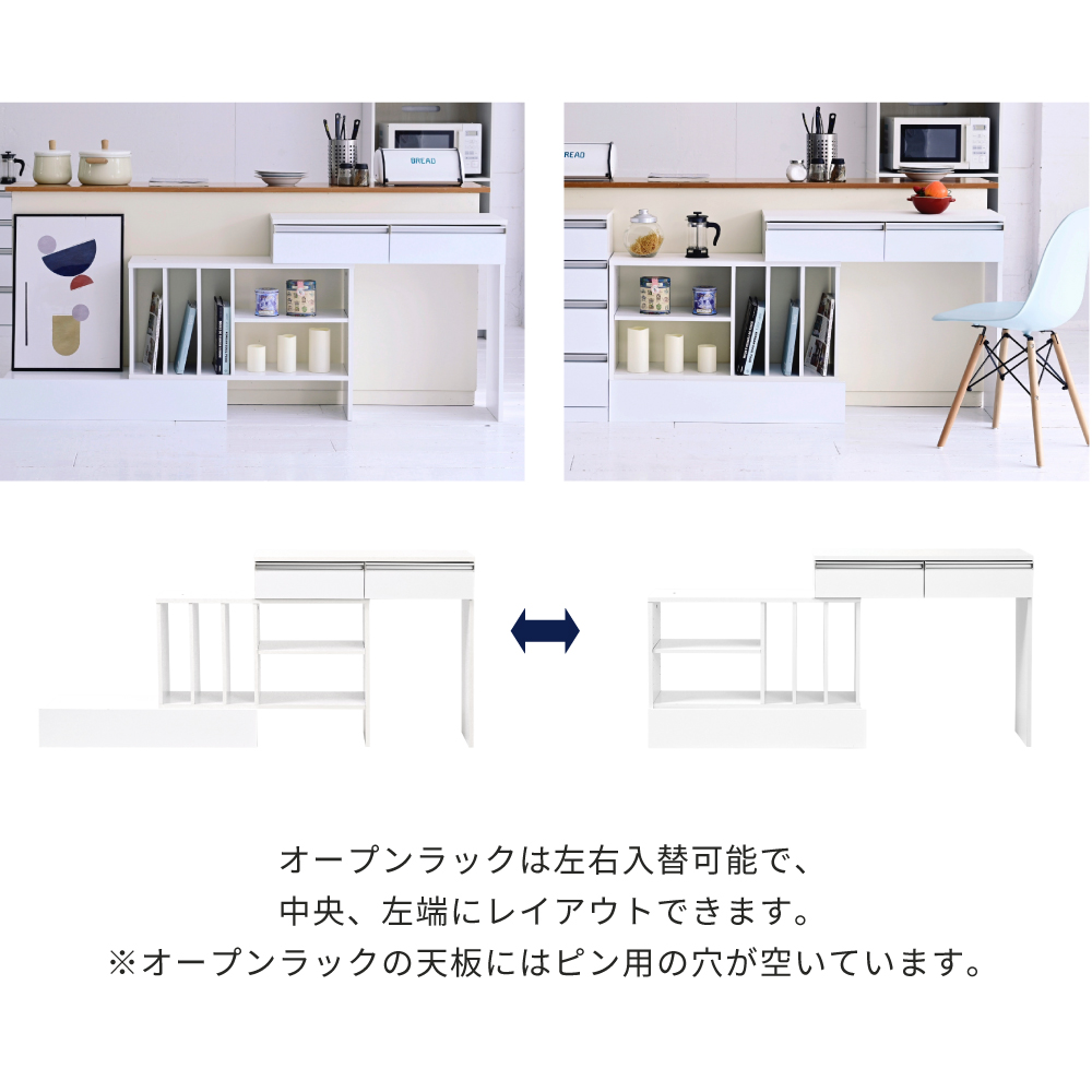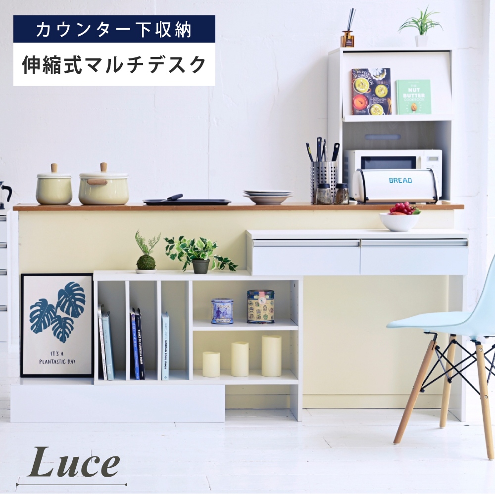 カウンター下収納 スリム マルチデスク 伸縮 オープンラック 白 薄型 間仕切り 鏡面 カウンター キッチン リビング 収納台