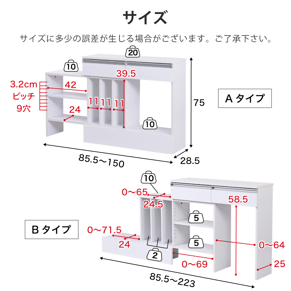(Aタイプ)幅85.5〜150×奥行28.5×高さ75