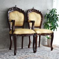 天然木を使用した、高級感あふれる手彫り仕上げのチェアーです。1台でも存在感があり、置くだけでアンティーク調の空間を演出できます。