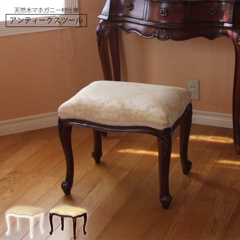 スツール 椅子 腰掛け 玄関 チェア クッション おしゃれ エレガント 完成品 天然木 マホガニー 猫脚 姫家具 アンティーク クラシック エレガンス 新生活