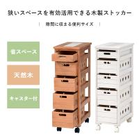 タイルキッチンワゴン 隙間収納 幅 25cm ナチュラル キッチンストッカー スリム おしゃれ キャスター付き 木製 天板 タイル 5段 新生活