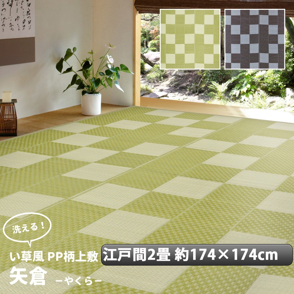 い草 風 ござ カーペット 上敷き ラグ江戸間 2畳 約174×174cm 和柄 市松 柄 ペット ポリプロピレン PP ダイニングラグ レジャーシート いぐさ 調 新生活