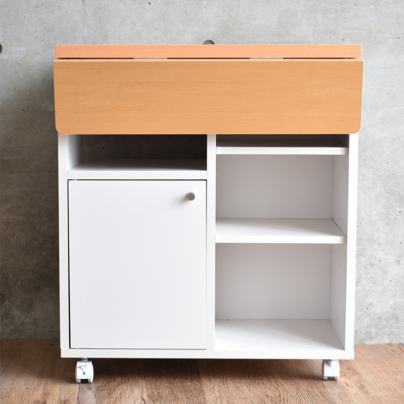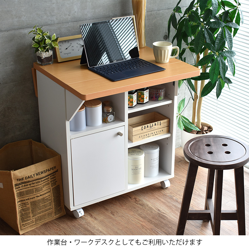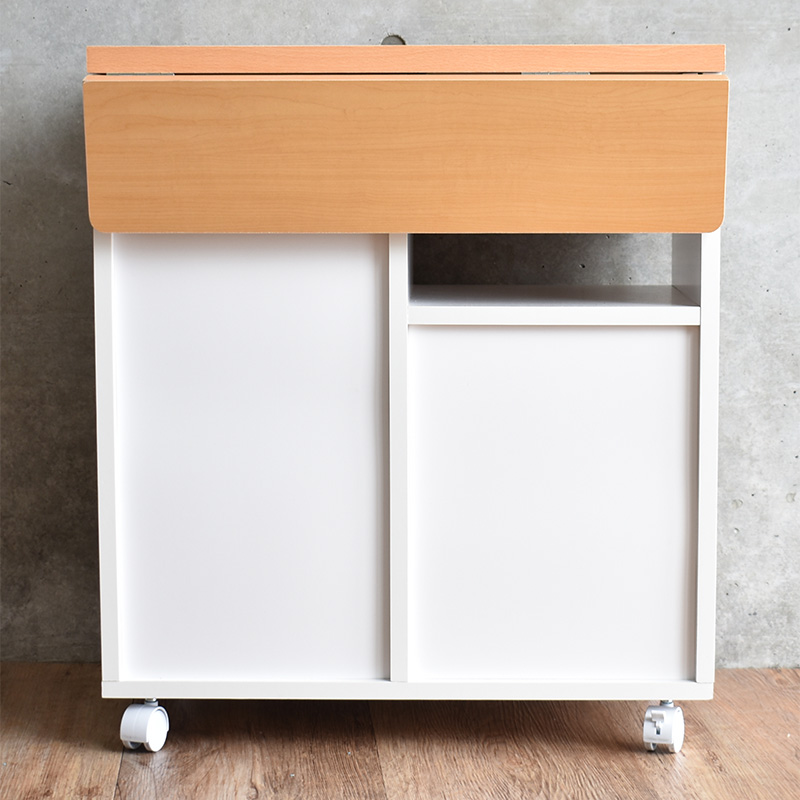 キッチンカウンター キッチンワゴン 幅60cm 両バタ ワゴン キッチン 収納 バタフライ 作業台 日本製 国産 おしゃれ キャスター 木製 白 新生活 一人暮らし