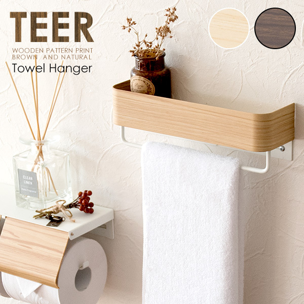 キレイな木目転写スチールのスタイリッシュなデザインが特徴のタオルハンガー。