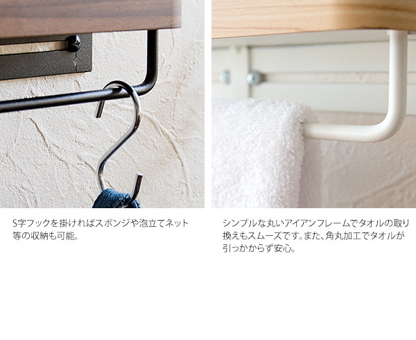 タオル掛け 収納付き タオルハンガー 壁掛け おしゃれ 北欧 アイアン スチール 幅25cm 木目 キッチン 洗面所 ランドリー キッチントイレ ラック付き 新生活