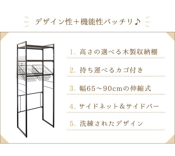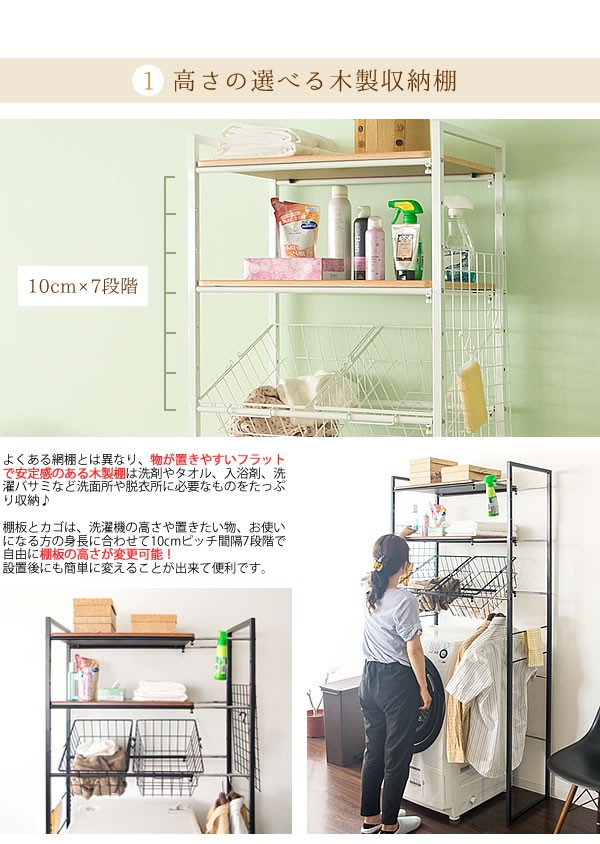 ランドリーラック 洗濯機ラック 洗濯機 収納 すきま収納 洗剤 棚 北欧 カゴ付き スチール ホワイト ブラック 新生活