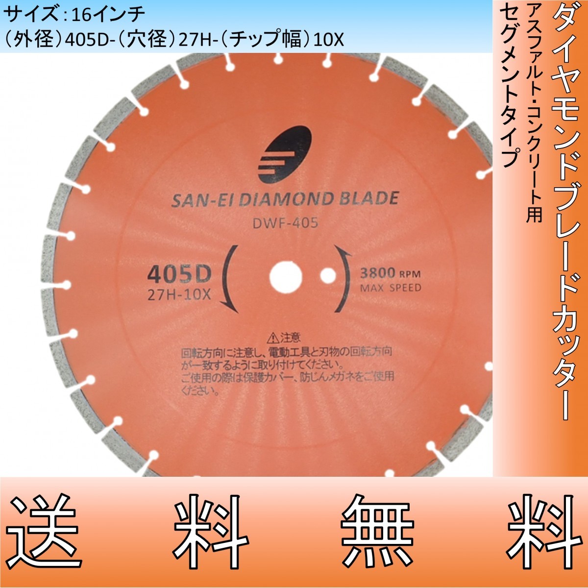 湿式 ダイヤモンドカッター 16インチ 405mm 道路 アスファルト コンクリート専用 レーザー溶接品 セグメント 切断用 刃 替刃