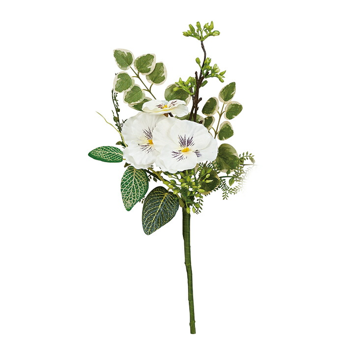 造花 アーティフィシャルフラワー パンジーミックスリーフピック ホワイト a-34530-001 【ascaアスカ】