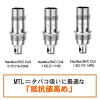 【メール便選択可能商品】Aspire社製のアトマイザーNautilus Tank(ノーチラスタンク)用の交換コイル5個セットです。2種類の抵抗値のコイル(1.6Ω)(1.8Ω)から選択し購入が出来ます。Nautilus Tank以外にも、同じメーカー内で複数互換性があります。