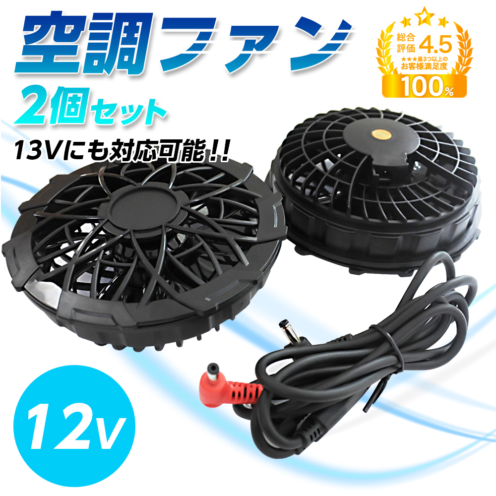 空調 ファン 2個 セット 12v ~ 13v 互換 高出力 薄型 2022 フルハーネス ベスト 対応 DC線 交換用 ケーブル コード つき ファンのみ バッテリー なし