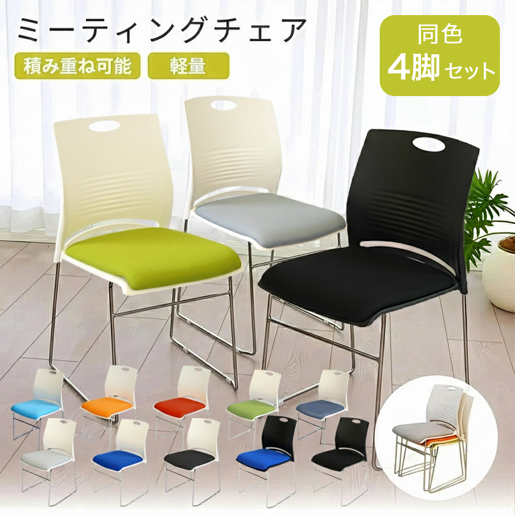 ミーティングチェア 会議椅子 スタッキングチェア 4脚セット 軽量 クッション付き 背もたれ有り セミナー 塾 オフィス 省スペース 収納可能 ミーティング 受付