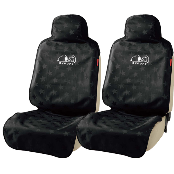 シートカバー 防水 汎用 フリーサイズ 運転席 助手席兼用 スヌーピー スター Snoopy star 防汚 キズ 防止 前席用 2席セット ブラック 黒