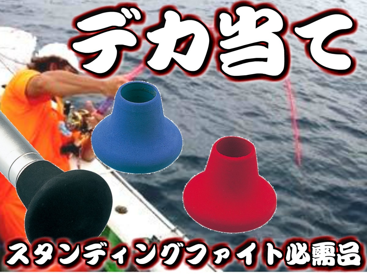 その名も「デカ当て」です。 竿尻につけてスタンディングファイトをサポートします。というか、、、無いと痛くて痛くてとてもできません。ライトタックル泳がせ釣りではもはや必需品です。 たけ店長も必ずつけております。 マグロなど長時間ファイトする場合は別売のT型のデカ当てのほうをお薦めします。