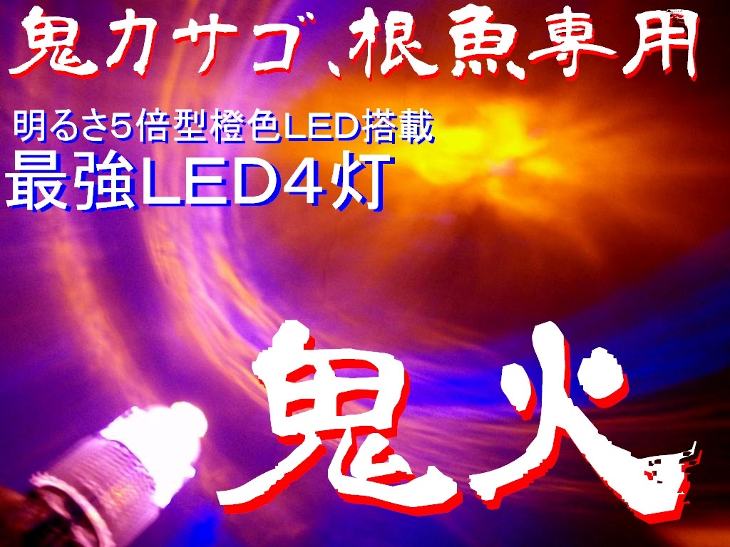 驚きの明るさ!鬼カサゴ・根魚専用 5倍型橙色LED搭載 最強4灯の超小型強烈集魚灯 その名も「鬼火」です!