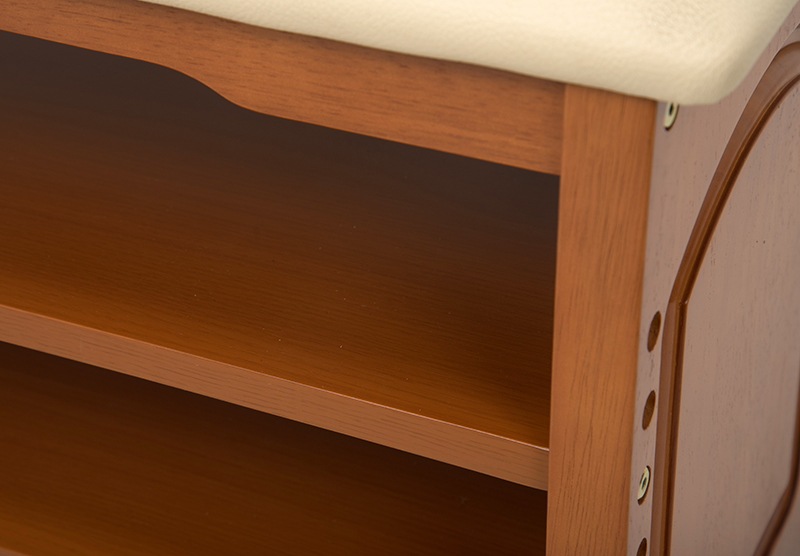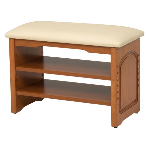 玄関ベンチ ライトブラウン 便利 棚 クッション付き 靴やスリッパの収納 天然木 椅子 いす 合成皮革 合皮 玄関 ベンチ 収納 木