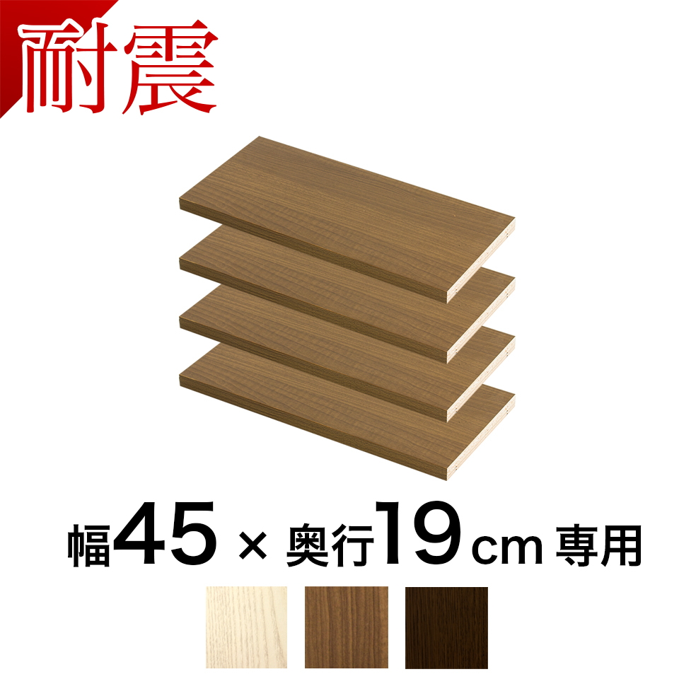 | 耐震 つっぱり書棚幅45cm 奥行19cmタイプに使用する追加用可動棚板の4枚組です。 もっと棚数を細かく収納したい方に! 耐震 つっぱり書棚と一緒にご検討下さい。 | |||