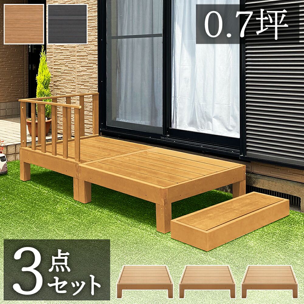縁台 3点セット 0.75坪 人工木材 ロータイプ 樹脂 屋外 頑丈 デッキ おしゃれ ウッドデッキ 人工木 ブラウン 縁側 腐りにくい 丈夫 人工木縁台