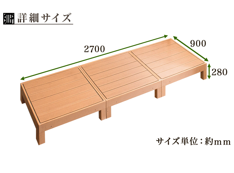 ■縁台 3点セット 0.75坪 人工木材 ロータイプ 樹脂 屋外 頑丈 デッキ おしゃれ ウッドデッキ 人工木 ブラウン 縁側 腐りにくい 丈夫 人工木縁台■<br><br>■商品番号