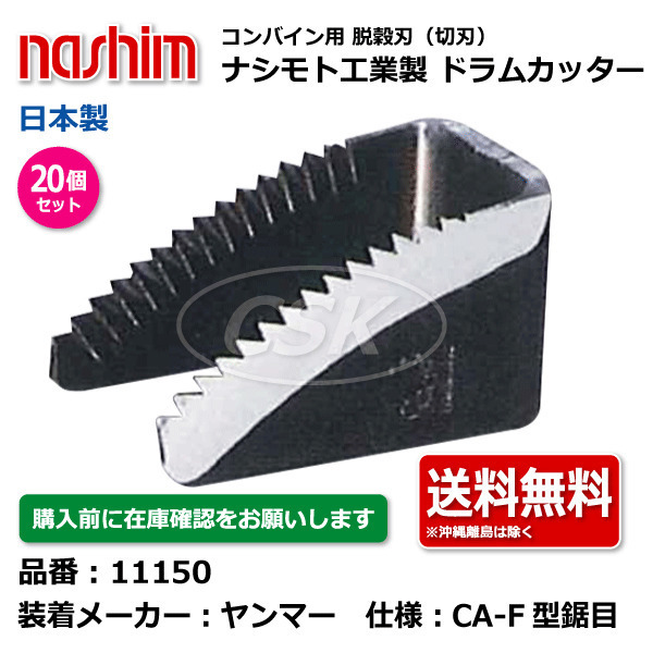 20個 ヤンマー ナシモト工業 nashim コンバイン ドラムカッター 11150 CA-F型鋸目 日本製 切刃 脱穀刃