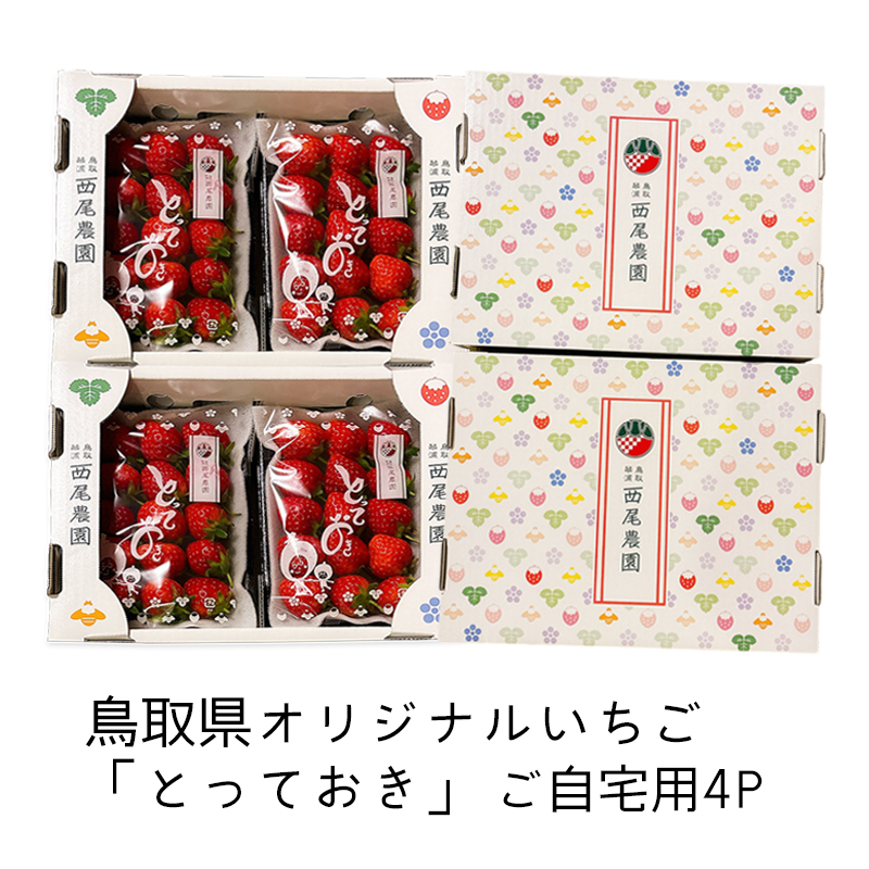 3月末まで 鳥取県オリジナルいちご「とっておき」ご自宅用 大 4P入り(1P目安5〜10粒入り)
