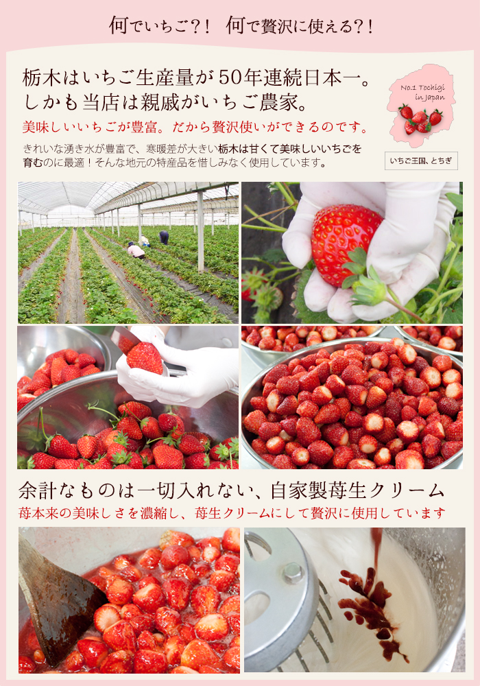 ◆原材料名:乳等を主要原料とする食品(国内生産)、クリーム、苺、卵、小麦粉、砂糖、牛乳、アーモンドプードル、植物性油脂、アプリコットジャム、ゼラチン、洋酒 / 乳化剤、PH調整剤、香料 (一部に乳成分・卵・小麦・アーモンド・ゼラチン・オレンジ・りんご・大豆を含む)