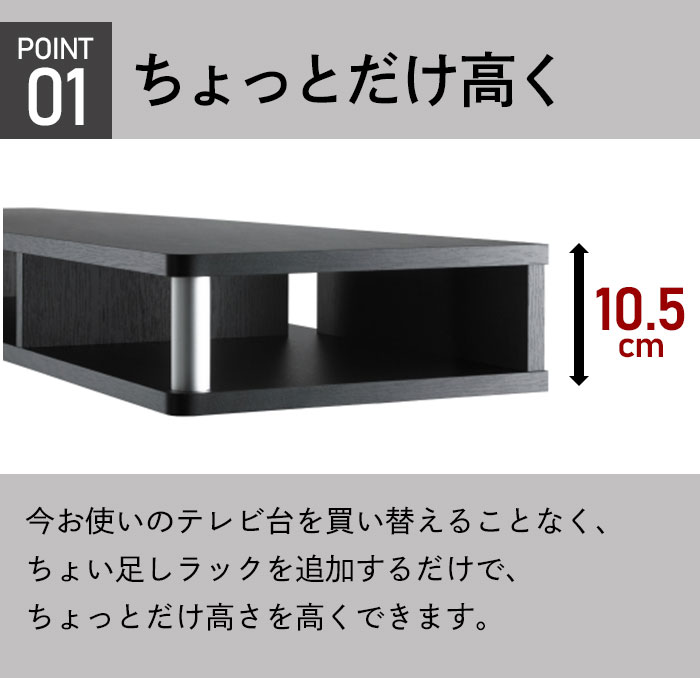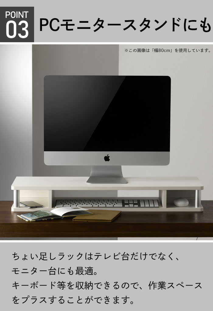 テレビ、パソコンの高さを少し上げたい、買い足しのHDD等をスッキリ収納出来ます。