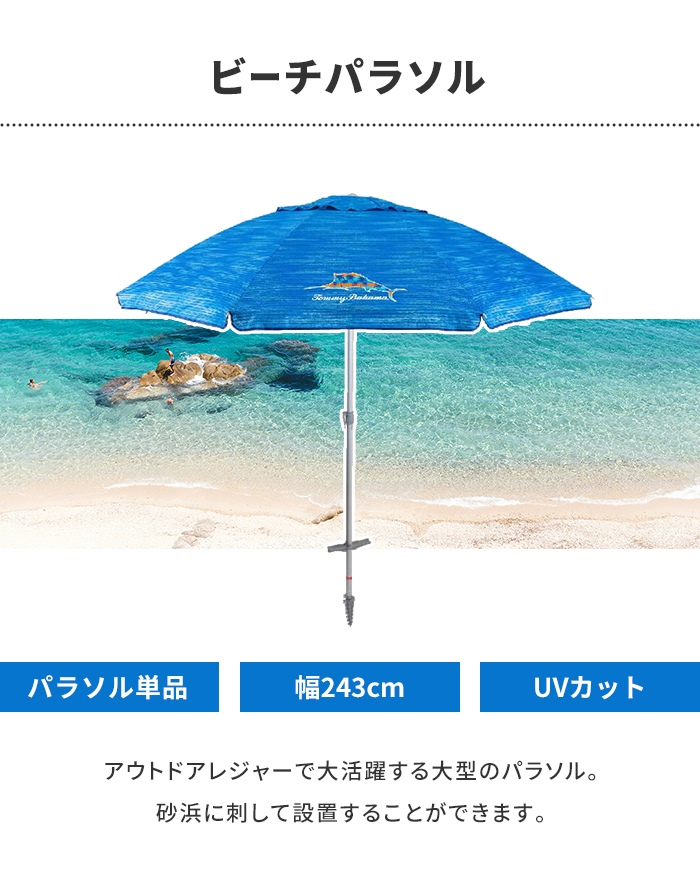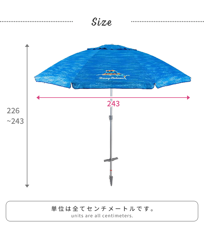 | Tommy Bahama トミーバハマ ビーチパラソル 幅243cm 大型 日よけ アウトドアパラソル ガーデンパラソル 折りたたみ 直挿し 海 山 川 夏 リゾート レジャー ビーチ 海水浴 テラス ベランダ 省スペース コンパクト 自立型 おしゃれ オーニング シェード USA アメリカ直輸入 ブルー 青 レジャー BBQ キャンプ 奥行243 高さ226-243 サンシェード 大型パラソル レジャーパラソル アウトドア用品 レジャー用品 日除け 日陰 日焼け対策 便利 アウトドアレジャー 折り畳みタイプ 庭 ビーチ 海水浴場 |