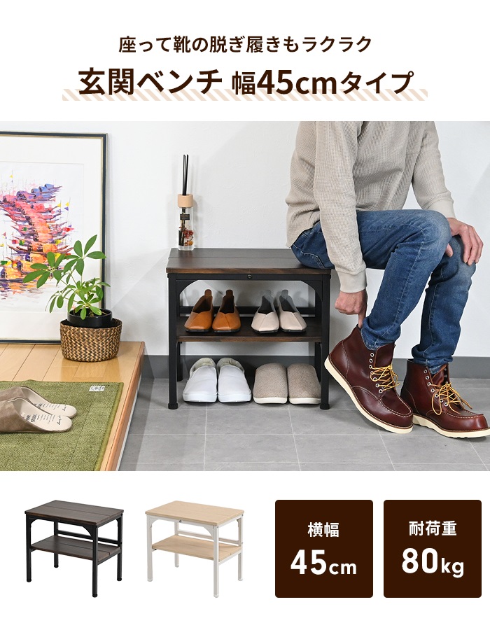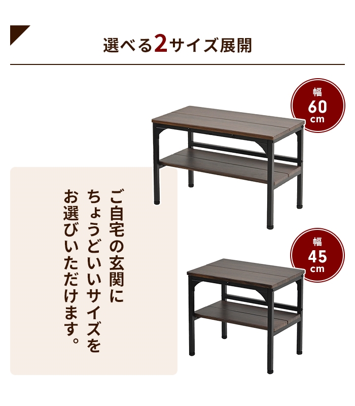 | 【棚付玄関ベンチ】 ● 幅45cm ● 幅60cm ※このページは[棚付玄関ベンチ 幅45cm]を販売しております。 |