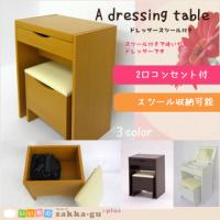 2口コンセント付でお化粧・メイクに便利な機能。 ガラステーブルで収納部分が見えるのですっきり整理できちゃいます。 引き出し付きなので小物の収納にも役に立ちます。 スツールは収納可能でうれしいセット販売です。