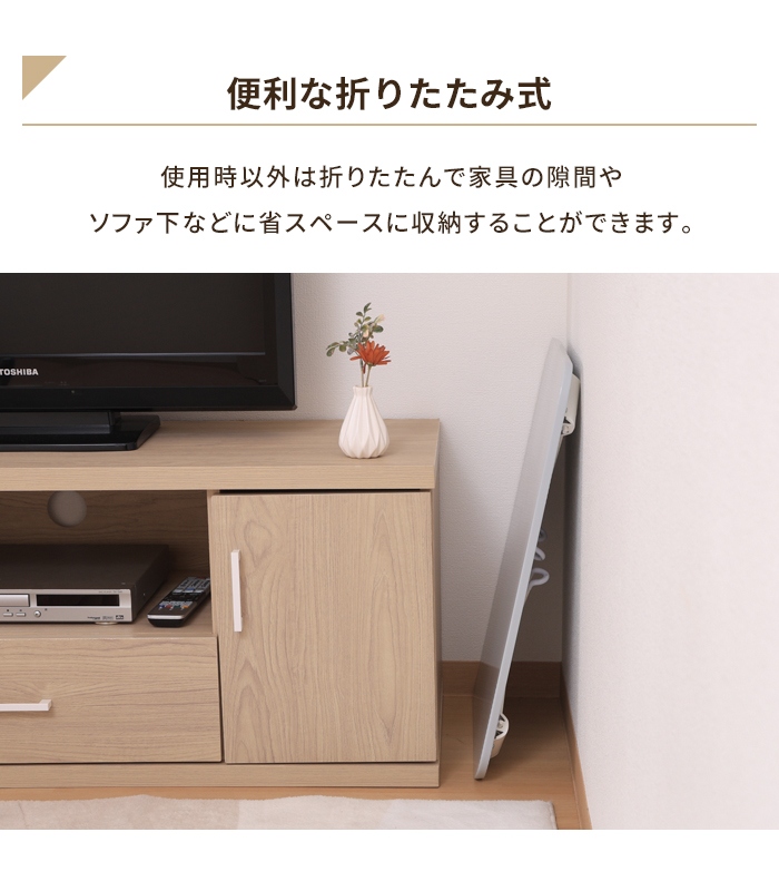| くすみカラーが美しい折りたたみテーブル。 |