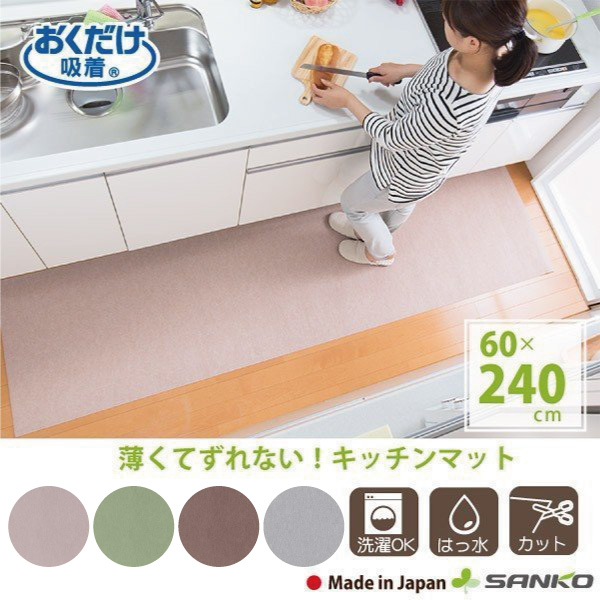 キッチンマット 60×240 拭ける ふける 北欧 おしゃれ 台所 ずれない 撥水 おすすめおくだけ吸着 サンコー 滑り止め
