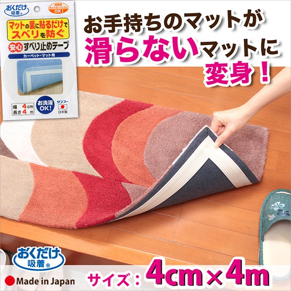 滑り止め 対策 安心すべり止めテープ 4m ずれない マット カーペット ラグ 転倒 防止 介護 高齢者 お年寄り 子供 玄関 台所 キッチンおくだけ吸着 サンコー