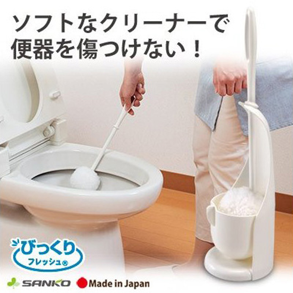 トイレブラシ掃除 おしゃれ 収納ケース付 トイレ用品 陶器 びっくりフレッシュ サンコー びっくりトイレクリーナー 日本製
