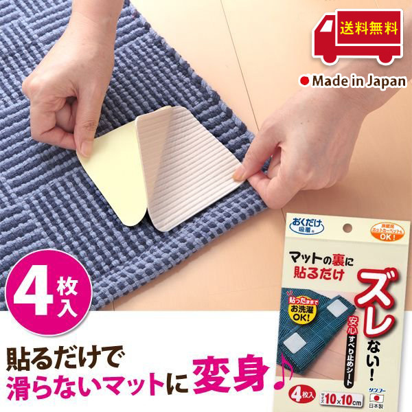 滑り止めシート カーペット ずれない マット ラグ すべり止め対策 安心シート 4枚入 転倒 防止 介護 高齢者 子供 おくだけ吸着 サンコー