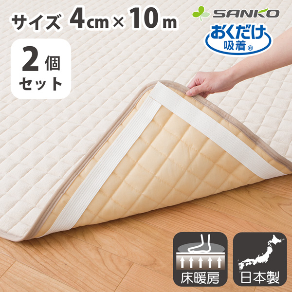 「日本製」お手持ちのマットの裏に貼るだけでズレないマットに変えることができるテープ(巾4cm×10m)×2個セット。10mで約4畳分のマットに使用できます。テープタイプですのでマットの大きさに合わせてカットしてお使いください。