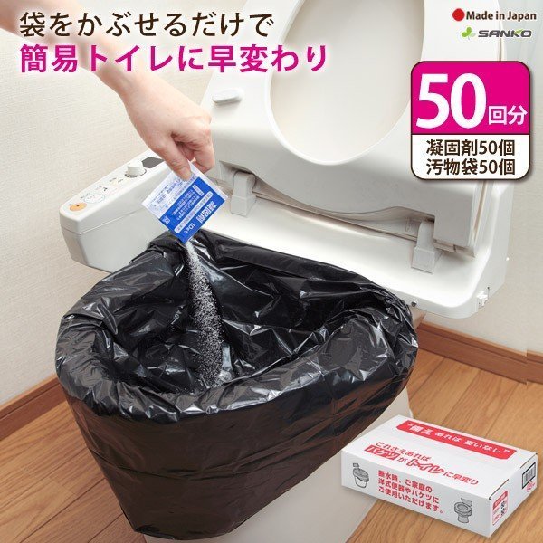 簡易トイレ 携帯トイレ 非常用 災害用 防災グッズ 車 ポータブルトイレ 凝固剤 介護 地震 断水 避難 サンコー 日本製