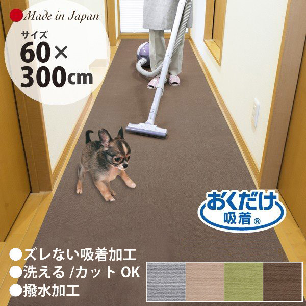 廊下用 カーペット ロング マット ペット 60×300cm サンコー 敷き 犬 滑らない 撥水 洗える おくだけ吸着 ずれない