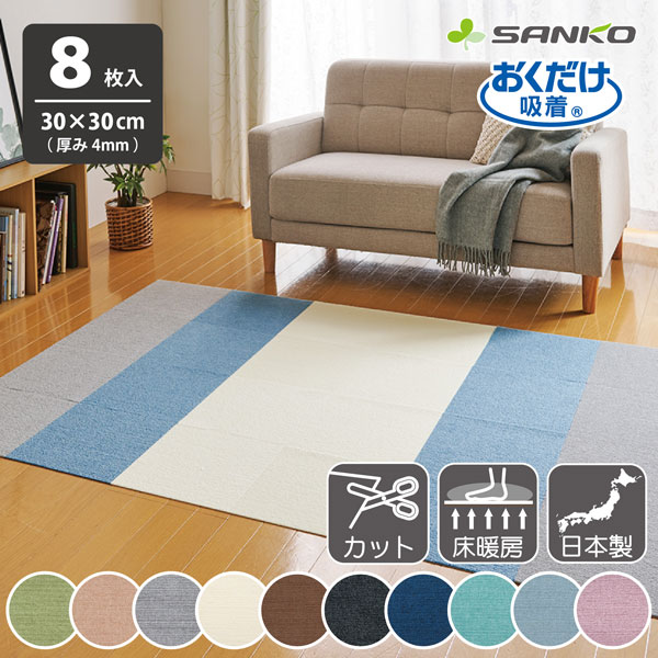 ペットマット タイルマット サンコー カーペットタイプ おしゃれ 犬 ペット 安い 無地 8枚 30×30cm おくだけ吸着 ずれない 滑らない コード
