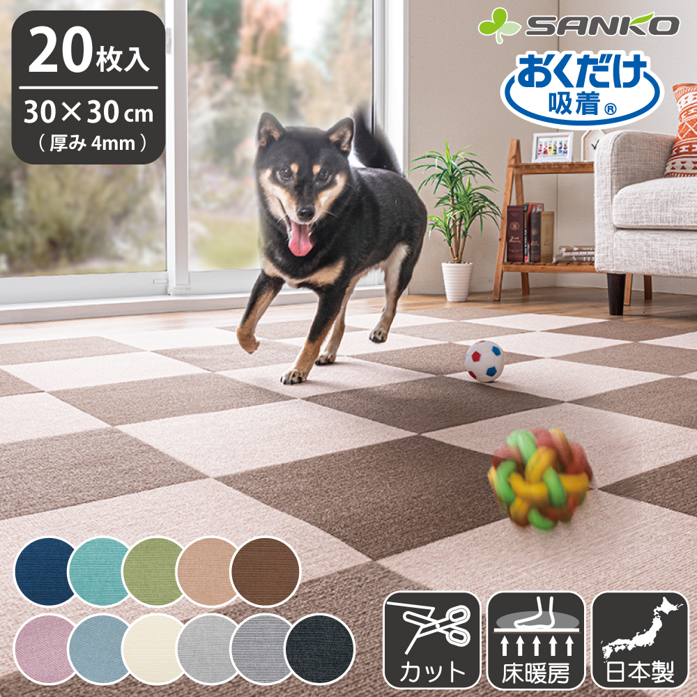 ジョイントマット タイル カーペット ペット 滑り止め 犬 ペット用 サンコー 撥水 おしゃれ 20枚入 30×30cm おくだけ吸着 ずれない
