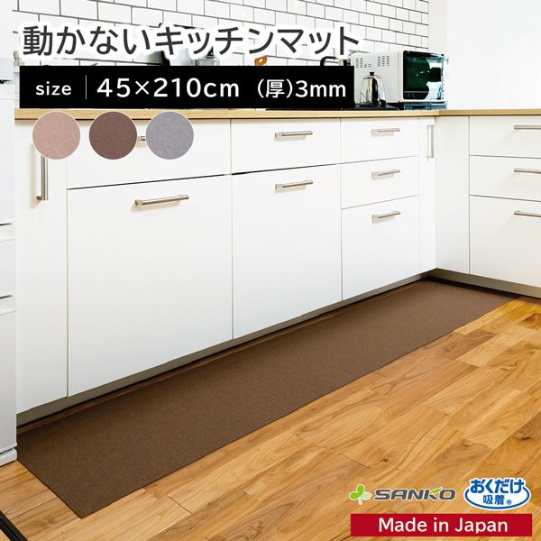 キッチンマット 210×45cm 拭ける ふける 台所 北欧 撥水 おしゃれ ずれない 洗える おすすめ 滑り止め フラット おくだけ吸着 サンコー