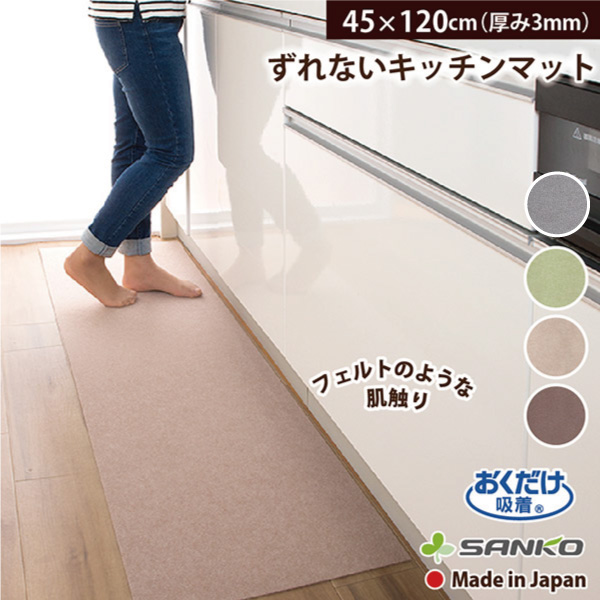 キッチンマット 45×120cm 拭ける ふける ずれない 洗える 撥水 北欧 おすすめ 滑り止め フラット おくだけ吸着 サンコー