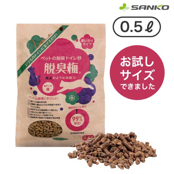 猫砂 ネコ砂 ねこすな ペットの脱臭トイレ砂 脱臭梅 うめ 化学物質不使用 消臭効果 脱臭力 アップサイクル 0.5L お試し商品 サンプル 日本製