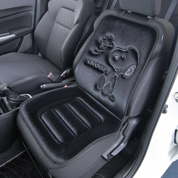 カーシート クッション ダブル 車用 SNOOPY スヌーピー プレス 1枚 約48X95cm ベロア素材 手触り 抜群 ブラック 黒 ボンフォーム 5712-07BK 送料無料