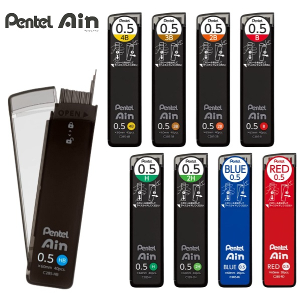ぺんてるアイン シャープ替芯 0.5mm 2H、H,HB、B、2B、3B、4B、赤、青 選べる 3個セット スマッシュ オレンズ 最適芯 シャー芯