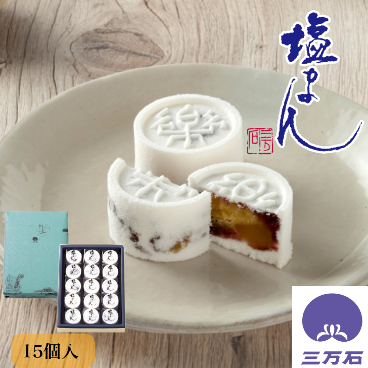 公式三万石 塩まん15個入 まんじゅう 饅頭 栗 くり 落雁 らくがん しおがま 抹茶 粒あん 粒餡 福島 土産 銘菓 和菓子 御礼 御祝 お祝 内祝 彼岸 御供 志 個包装