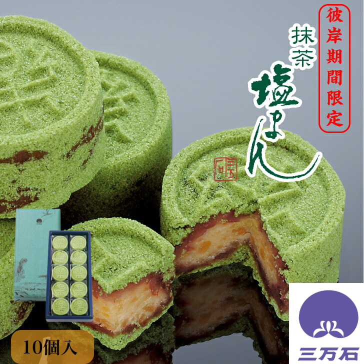 公式三万石 抹茶塩まん10個入 まんじゅう 饅頭 栗 くり 落雁 らくがん しおがま 抹茶 粒あん 粒餡 福島 土産 銘菓 和菓子 御礼 御祝 お祝 彼岸 御供 志 個包装