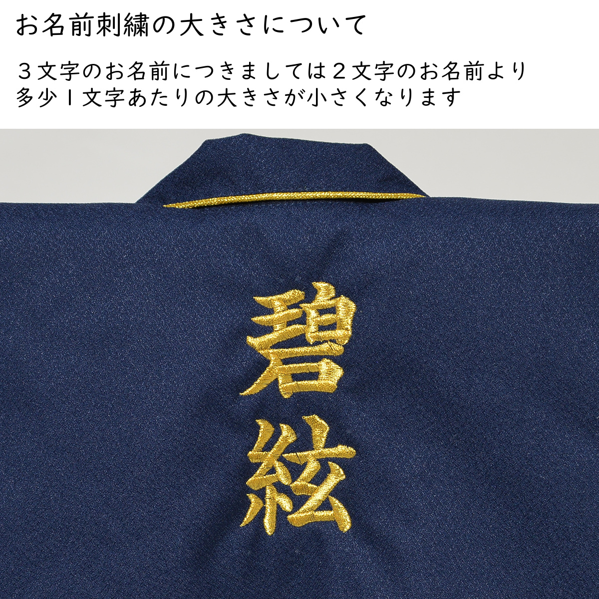 3文字のお名前の場合、商品写真の2文字の大きさより多少1文字の大きさが小さく刺繍されます。
