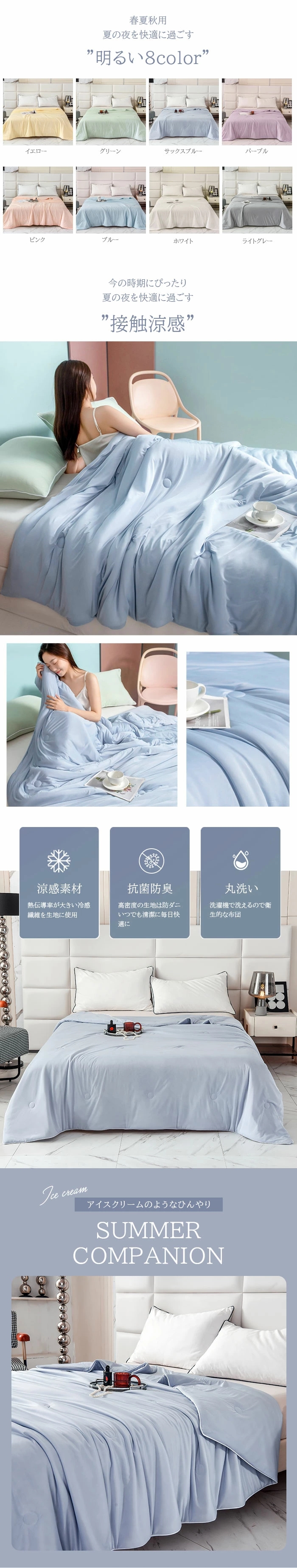 春夏秋3シーズンで快適に使える暑い日や寝苦しい日は冷房と併用することで、快適な睡眠に導きます。
