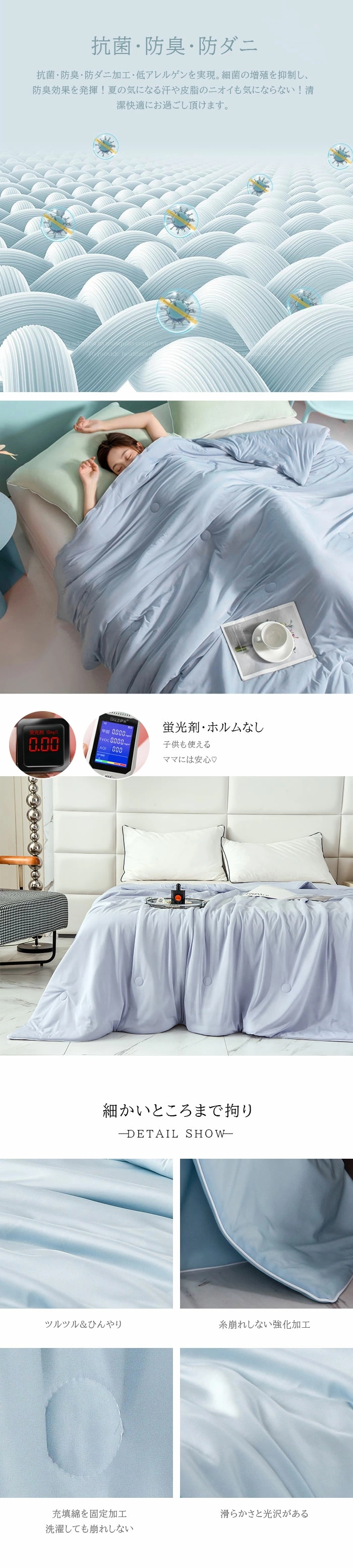 抗菌・防臭・防ダニ加工・低アレルゲンを実現。細菌の増殖を抑制し、防臭効果を発揮!